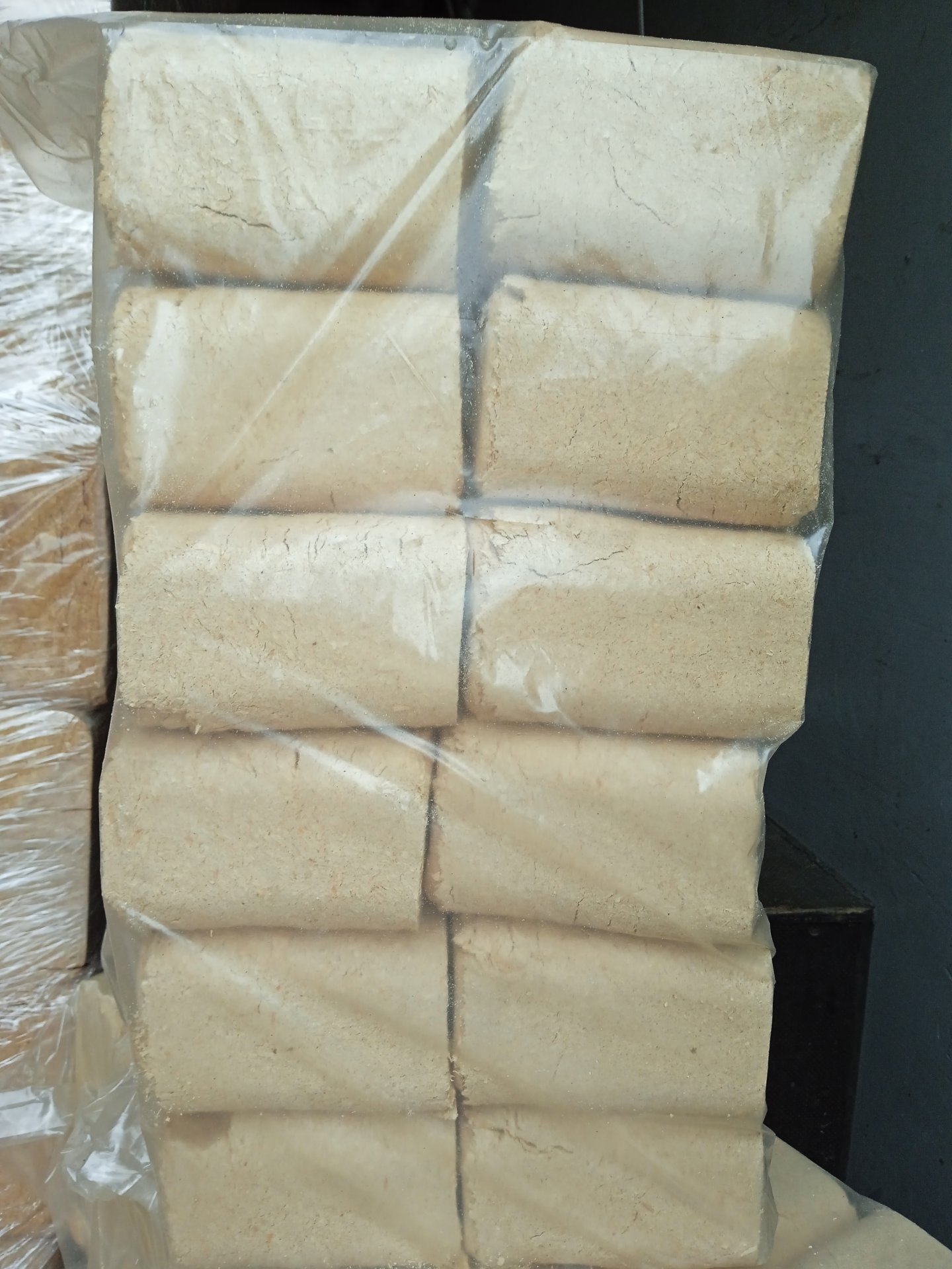 Brykiet jest twardy, nie rozsypuje się, nie kruszy.