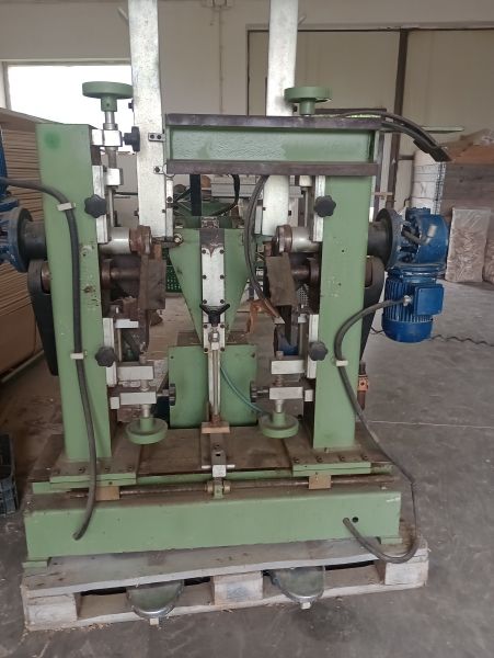 Zagniatarka do ryflowania (moletowania) końców szczebli i innych prętów drewnianych oraz fazowania czół. Tak przygotowane elementy lepiej osadza się w gniazdach. Szczególnie przydatna przy produkcji łóżeczek. Automat, duża wydajność.