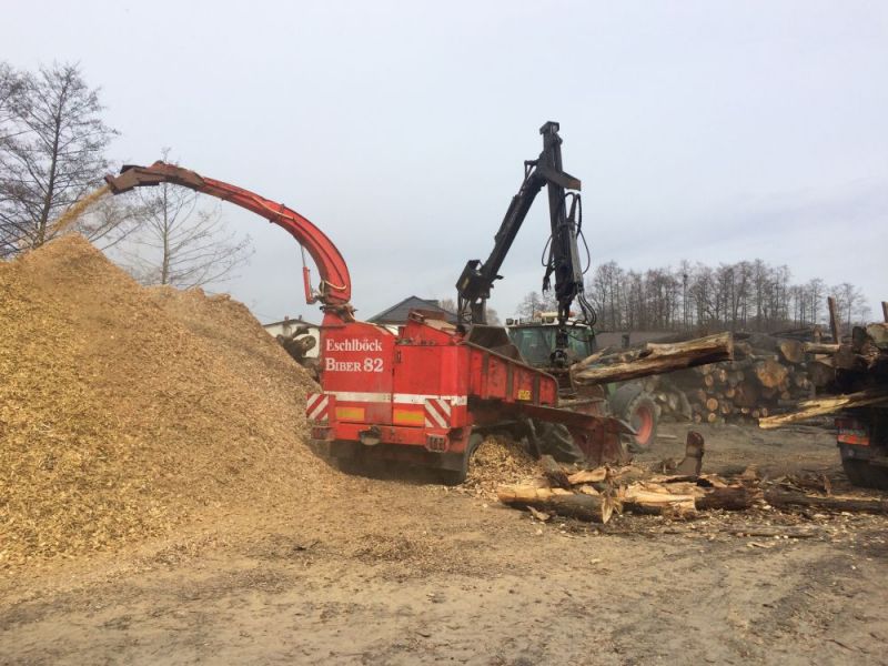 Firma oferuje usługę zrębkowania biomasy drzewnej (gałęzie, drągowina, kłody) z wykorzystaniem rębaka Eschlbock Biber 82Z napędzany ciągnikiem Fendt 930 (300 KM).