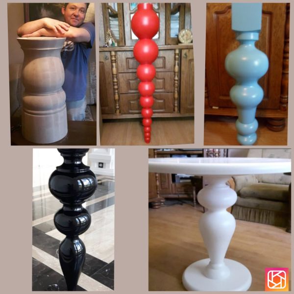 Toczę w drewnie usługowo nogi do stołów stolików i kule o dużych średnicach. Zapraszam do przesłania rysunku lub zdjęcia, postaram się pomóc w realizacji pomysłu klienta.