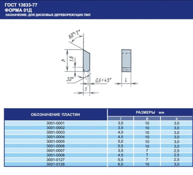 Płytka z węglika spiekanego dla pił tarczowych, w tabeli podany rozmiar .Po więcej informacji proszę kontaktować się telefonicznie lub mail.