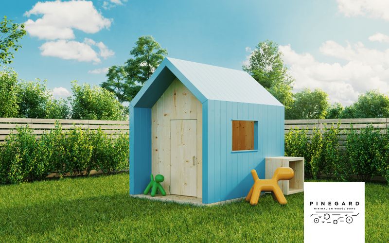 Nowoczesny drewniany domek dla dzieci z drewna Pinegard Blautak