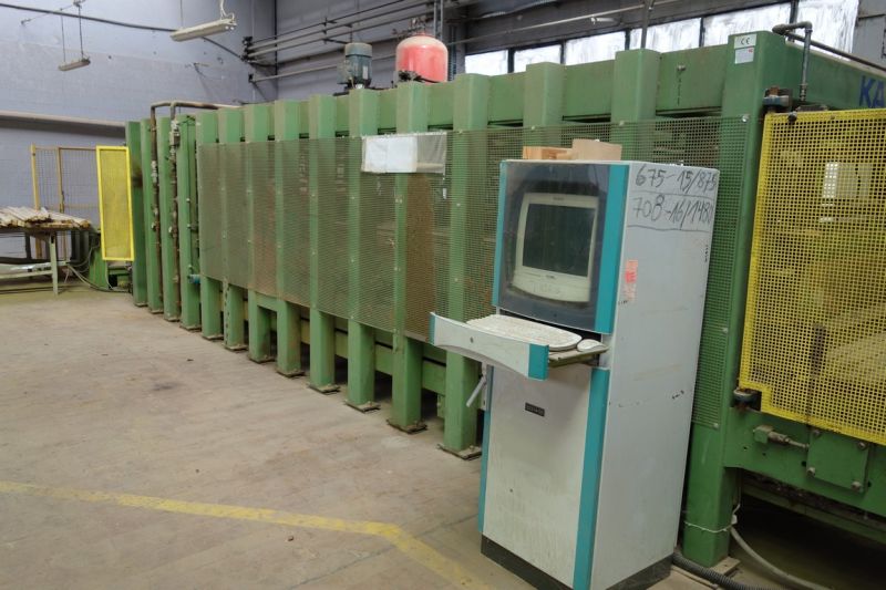 Automatyczna prasa hydrauliczna do klejenia Kallesoe Typ LV 7821 prasa służy do klejenia elementów drewnianych np. Blatów o wymiarach maksymalnych 7800 mm x 2100 mm,
