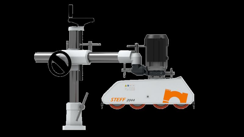 Solidna konstrukcja do podtrzymywania i optymalnego ustawienia podajnika automatycznego na maszynie stolarskiej.