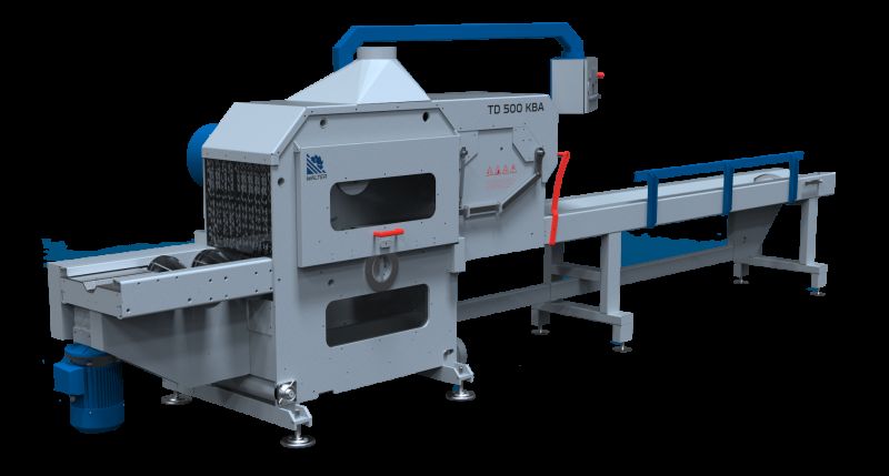 Maszyna występuje również w wersji bez łańcucha pomiędzy piłami co pozwala na ustawienie piły na środku i wycinanie dwóch przym z jednej kłody.