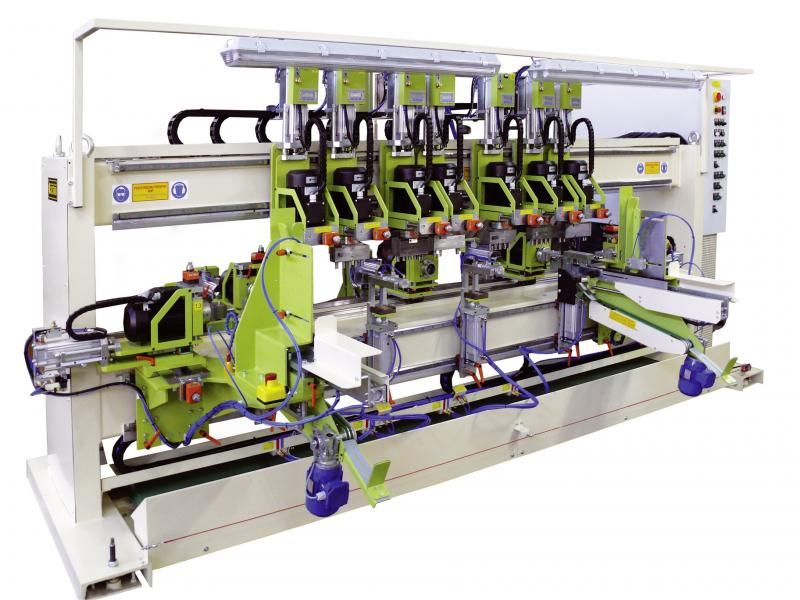 ⭐ Die AWN Automatische Bohrmaschine ist eine moderne Maschine zum Bohren von Löchern für Dübel, Scharniere und andere Bohrungen nach Ihren Anforderungen. Die Bohreinheiten können mit Linear- oder speziellen Mehrspindelköpfen ausgestattet werden. Dank modularer Erweiterungsmöglichkeiten – obere, seitliche, vordere, schwenkbare und untere Bohreinheiten sowie ein automatischer Vorschub – können Sie je nach Ihren technologischen Anforderungen verschiedene Leistenarten in einem Arbeitsgang bohren. ⭐ Die Maschine bietet zudem umfangreiche und flexible Programmieroptionen – vom einstufigen bis zum mehrstufigen Bohren.