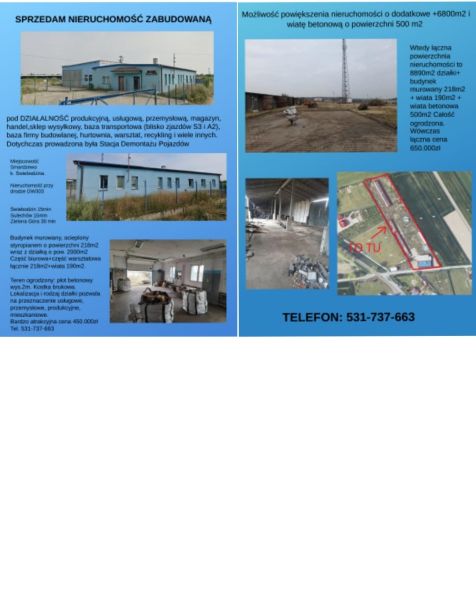 For sale: Sprzedam nieruchomość Smardzewo Lubuskie 8890m2 budynek 218m2 wiata190m2+wiata betonowa 500m2